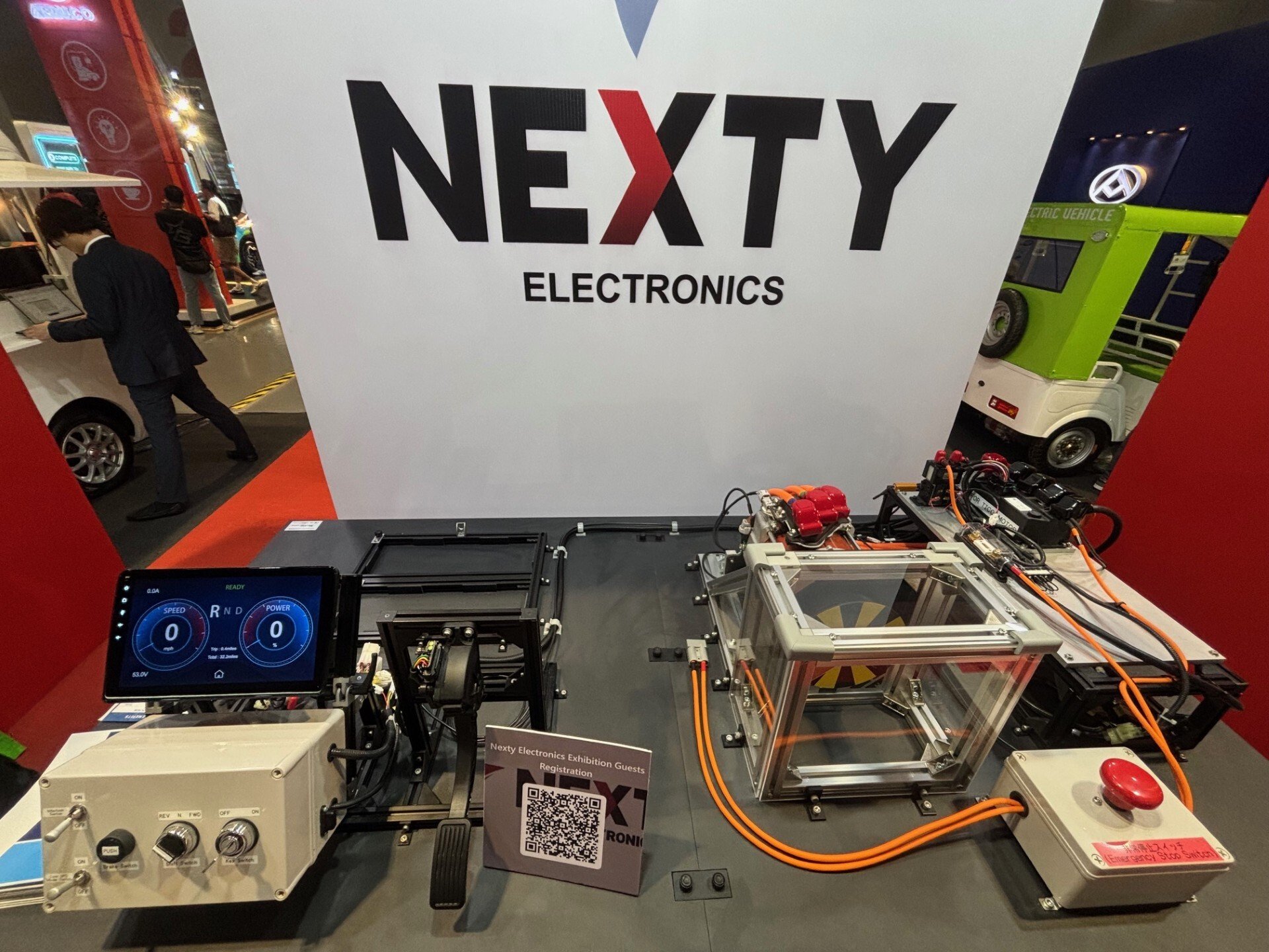 The booth by NEXTY Electronics also featured vehicles from "Assemble Point" and "ELAIA Green Vehicles", both of which adopt our products.